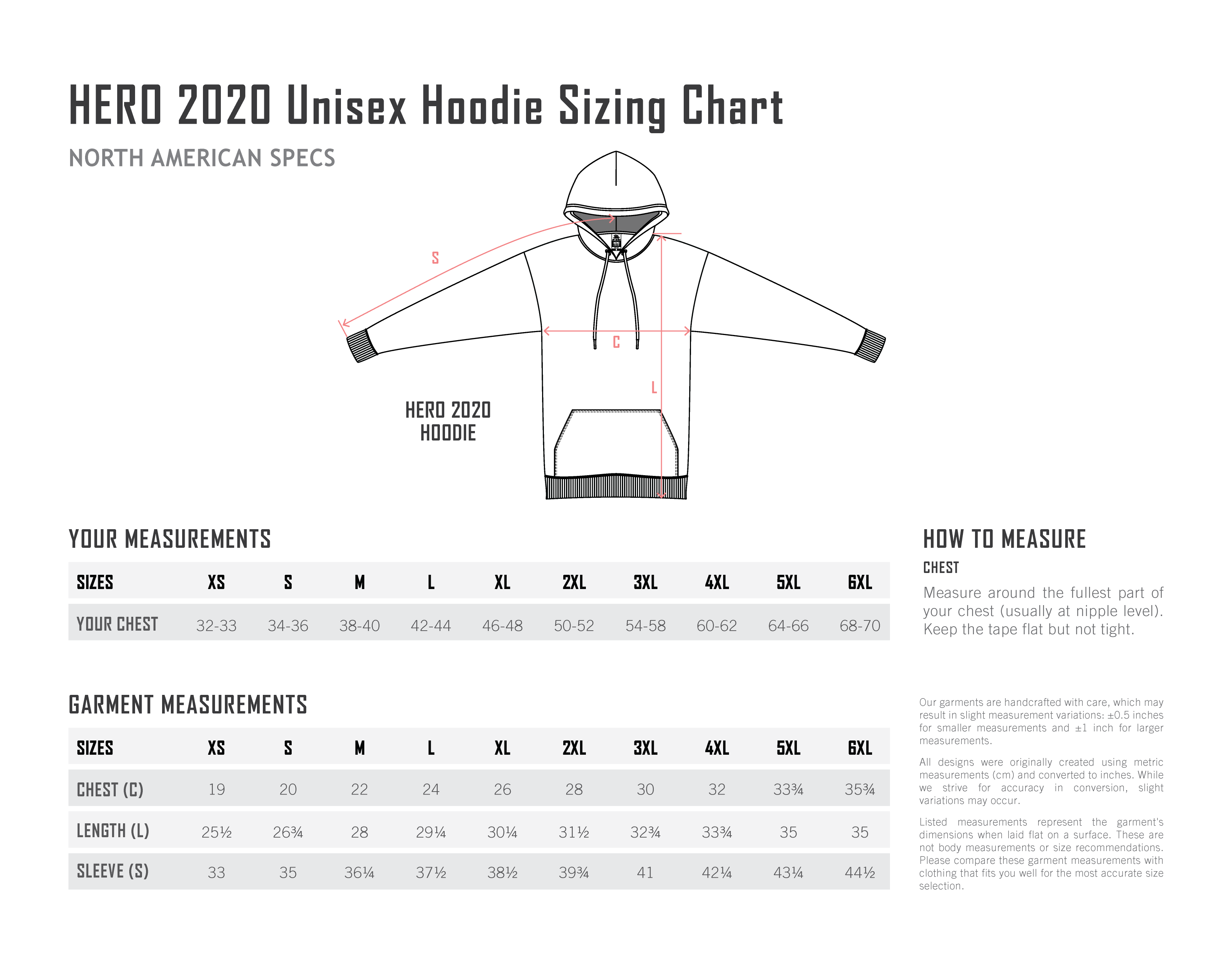 | Chest (C) | 19 in | 20 in | 22 in | 24 in | 26 in | 28 in | 30 in | 32 in | 33.75 in | 35.75 in |